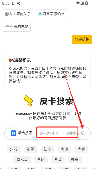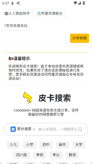 资源搜索与:支持多种文件类型,一键搜索。