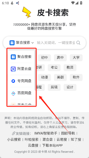 免费资源方面,皮卡搜索引擎可提供小说、影视、游戏、学习资料等各类免费资源的广泛搜索服务。