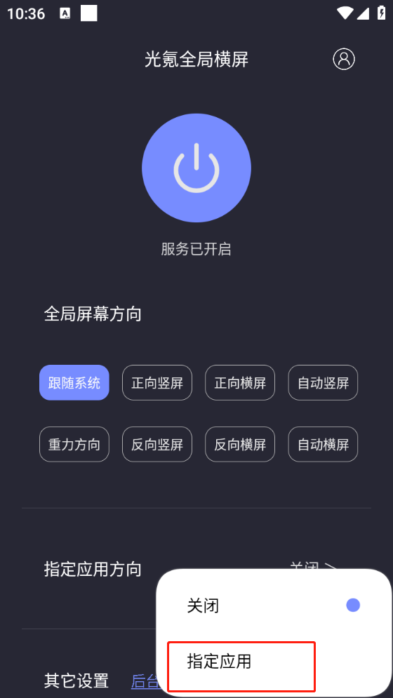 4、也可以制定某些应用进行屏幕方向控制。