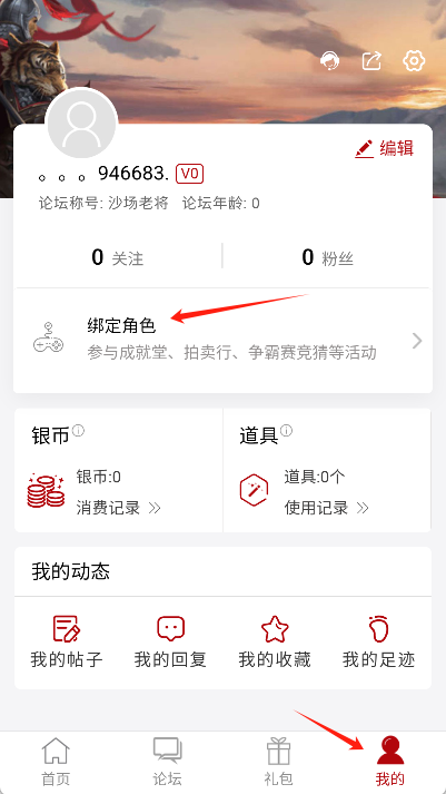 3、进入个人中心:点击左下角的“我的”,接着选择“绑定角色”选项。