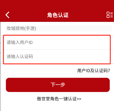 5、输入认证信息:在指定界面填写游戏用户ID与认证码。