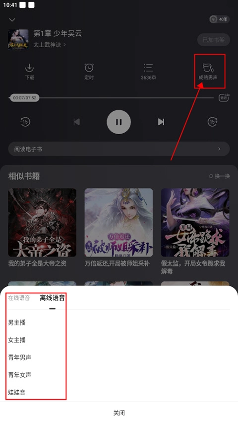 1、语音朗读功能:拥有细腻自然的人声朗读效果,还提供多种不同风格的音色可供挑选,能帮你解放双眼,让你可以随时随地聆听小说内容!