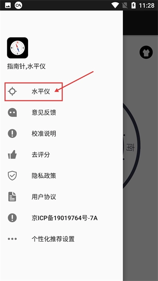 3、在展开的功能菜单里,找到【水平仪】选项并点击它,就能进入对应的水平检测功能页面。