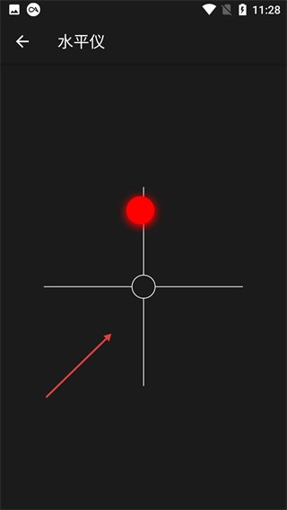 4、进入【水平仪】页面后,可依据红点在十字线上的位置判断设备是否处于水平状态,利用这一功能即可完成水平检测操作。