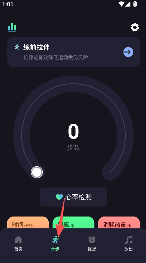 1、打开软件,进入计步界面,查看步数记录。