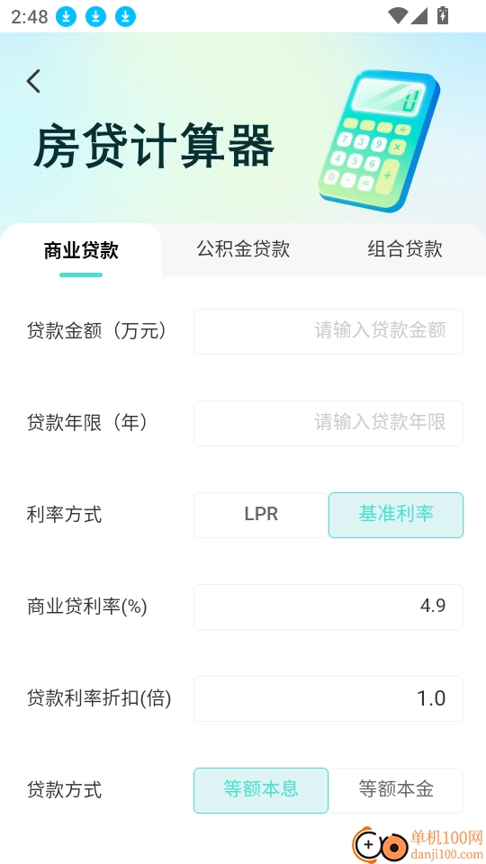 3、随后即可挑选所需的贷款,填写贷款金额、年限与利率信息,点击“开始计算”按钮进入下一步操作。