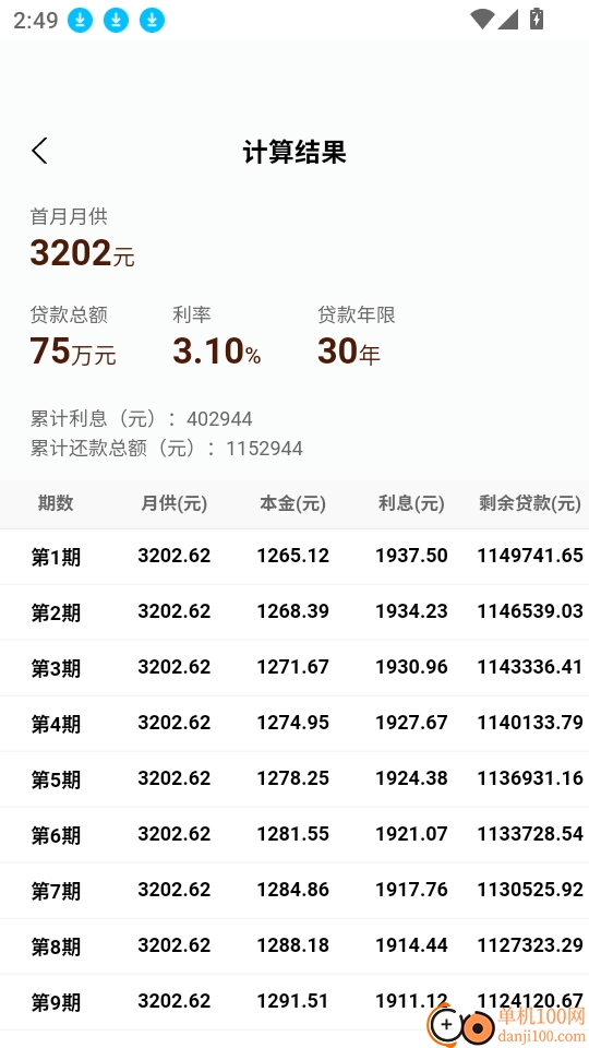 4、这样就能算出房贷的月供还款额,查看明确的计算结果。