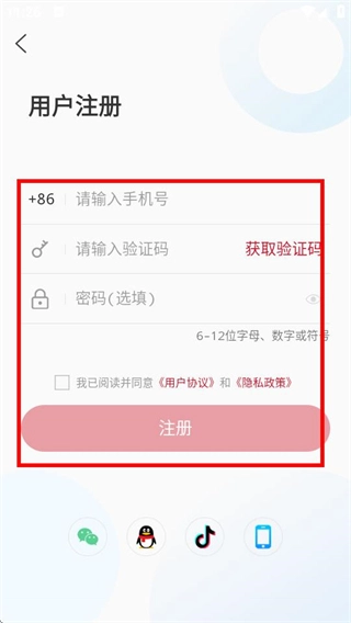 4、进入注册页面后,填写相关信息并勾选协议,随后点击注册按钮,就能完成账号注册操作。