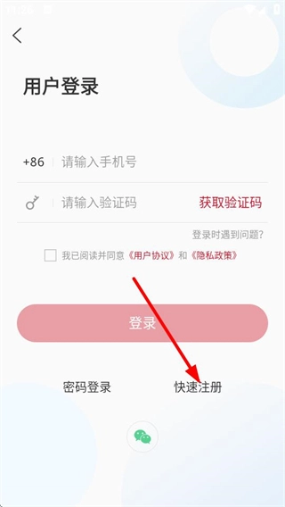 3、在登录页面,点击快速注册选项,可进入用户注册页面。