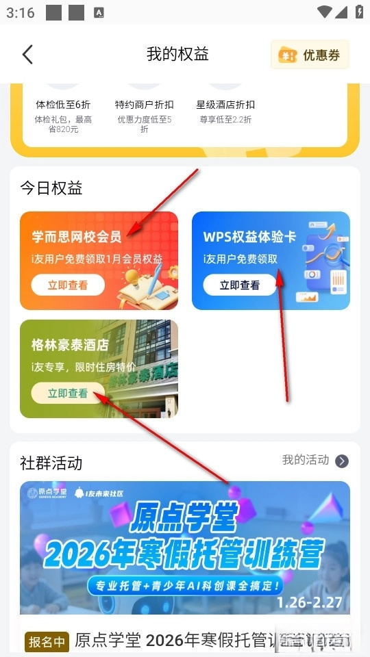 i友未来社区怎么查看我的权益