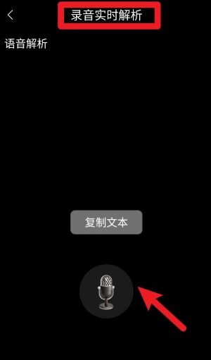 2、点击录音实时解析后进入语音识别界面,按下话筒图标即可开始录音并自动转为文字。