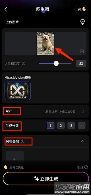 2、上传参考图片并设置相关参数,如风格强度、细节保留度等;