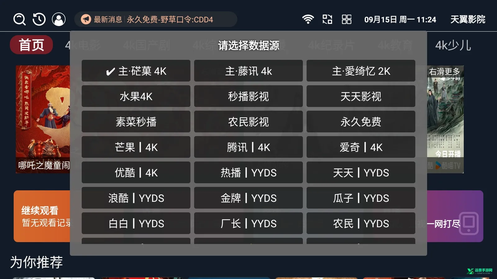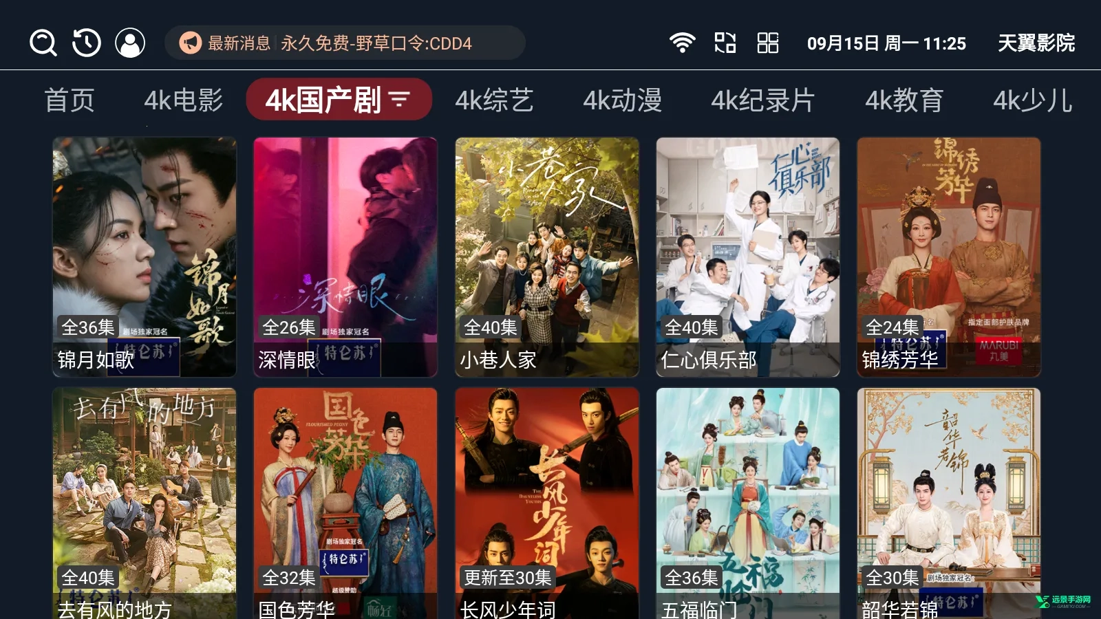 3.点击顶部的影视分类板块,这里包含4K电影、4K国产剧集、4K综艺节目、4K动漫作品等内容。