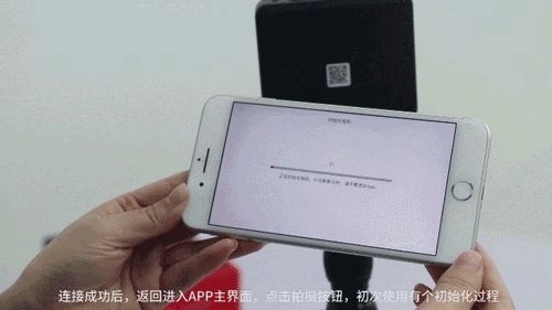 5、连接成功后,点击中间的拍摄图标进入拍摄界面,首次使用时会有初始化过程,初始化完成后返回主页面进行拍摄。再次点击拍摄按钮,进入预览页面,相机开始运作,此时人可以走到远处躲藏起来,观察界面上的画面,拍摄成功后相机会发出提示音。