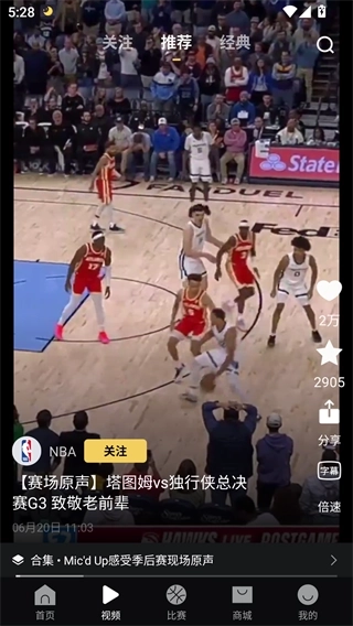 4、在视频板块里能看到一些NBA球星相关的视频内容,向下滑动就能切换视频。