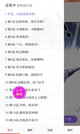 1、安装,打开软件,可以看到很多丰富的漫画;