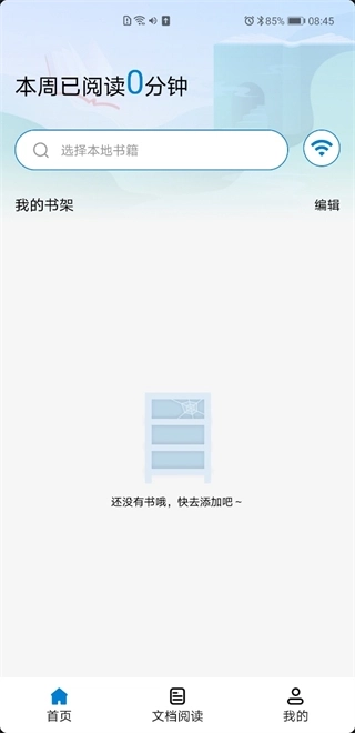 2、首页的“我的书架”功能支持直接添加心仪书籍,添加后阅读时只需点击对应书籍即可直接进入阅读界面。