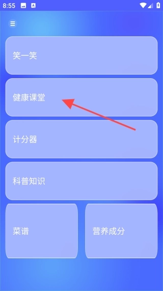 2、进入主界面,点击【健康课堂】图标。