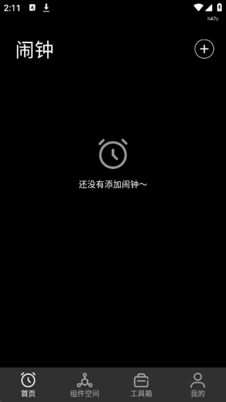1、在首页能够查看闹钟的详细信息,点击右上角的“+”号即可进入添加闹钟的页面;