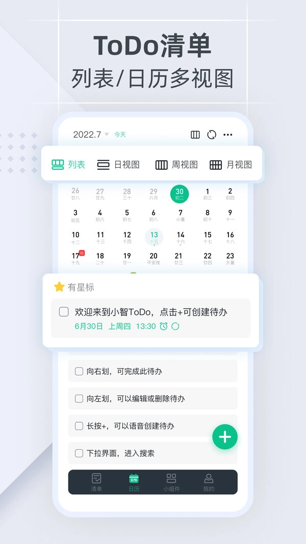 小智ToDo整合了日程清单、日历、计划表、备忘录、便签、闹钟、自定义提醒、自定义重复等多种实用功能,聚焦于待办清单(Todo)量化、日程管理(GTD)与事项提醒,是助力你高效办公、管理目标、养成习惯和便捷生活的贴心智能助手。