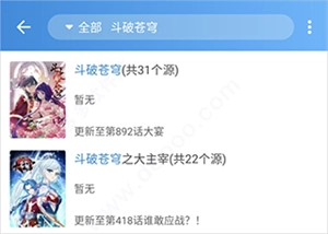 3、你看我随便搜一个关键词,它就会大量加载结果,一部漫画可能有几十个甚至上百个书源,这样即便某个书源出了问题,我们换一个就能解决。