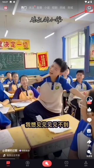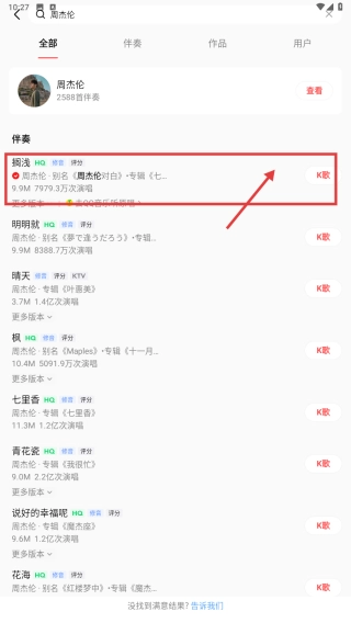 打开K歌类,点击右上角搜索图标,进入搜索页面。