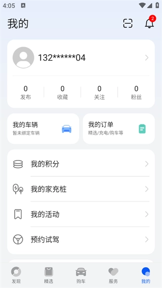 当前应用主要包含发现、精选、购车、服务、我的这五大版块。