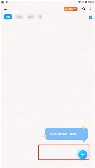 1、打开在本站的easynotes,进入首页,点击+,可开始创建笔记;