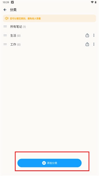 1、主页上有三个默认分类栏,点击末尾的加号即可新建分类