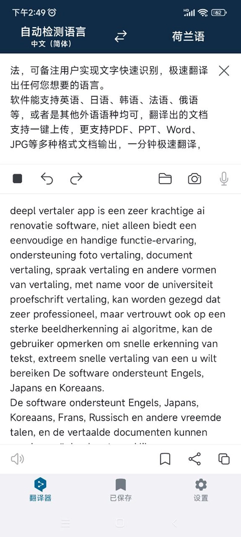 1、无限制文本翻译:能够自由进行翻译,在翻译量以及每次翻译的字数方面均无约束。