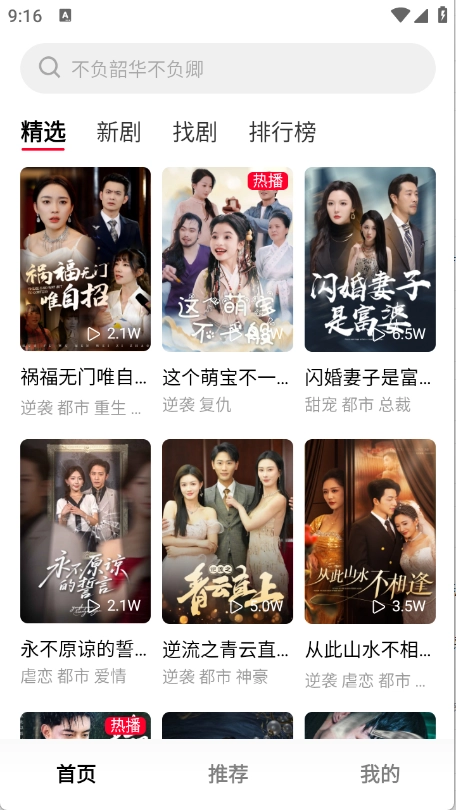 3、都市、逆袭、言情、复仇、总裁、家庭伦理等20+题材任挑,告别剧荒,你想看的都能来这里围观。