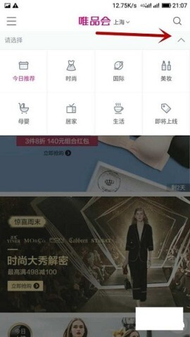 如果您不想滑动页面,直接点击“今日推荐”栏目右侧的向下箭头,各类商品类别便会即刻呈现。