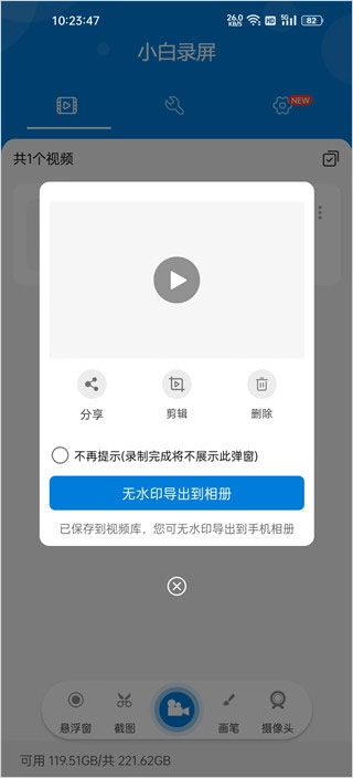 5、录制完成点击无水印导出相册即可