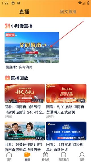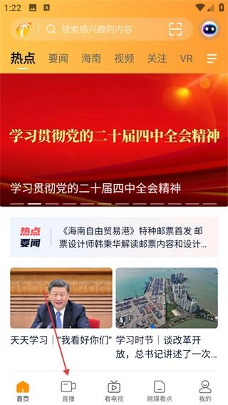 1、打开视听海南App,点击底部【直播】选项,进入直播内容页面。