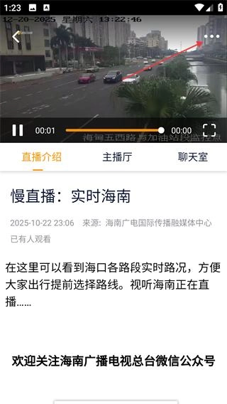 2、在直播页面中,选择想要观看的直播(如“慢直播·实时海南”),点击进入直播播放界面。